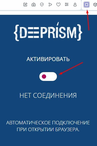 Запустите расширение и подключитесь к ВПН-сервису DEEPRISM в один клик бесплатно и без регистрации: